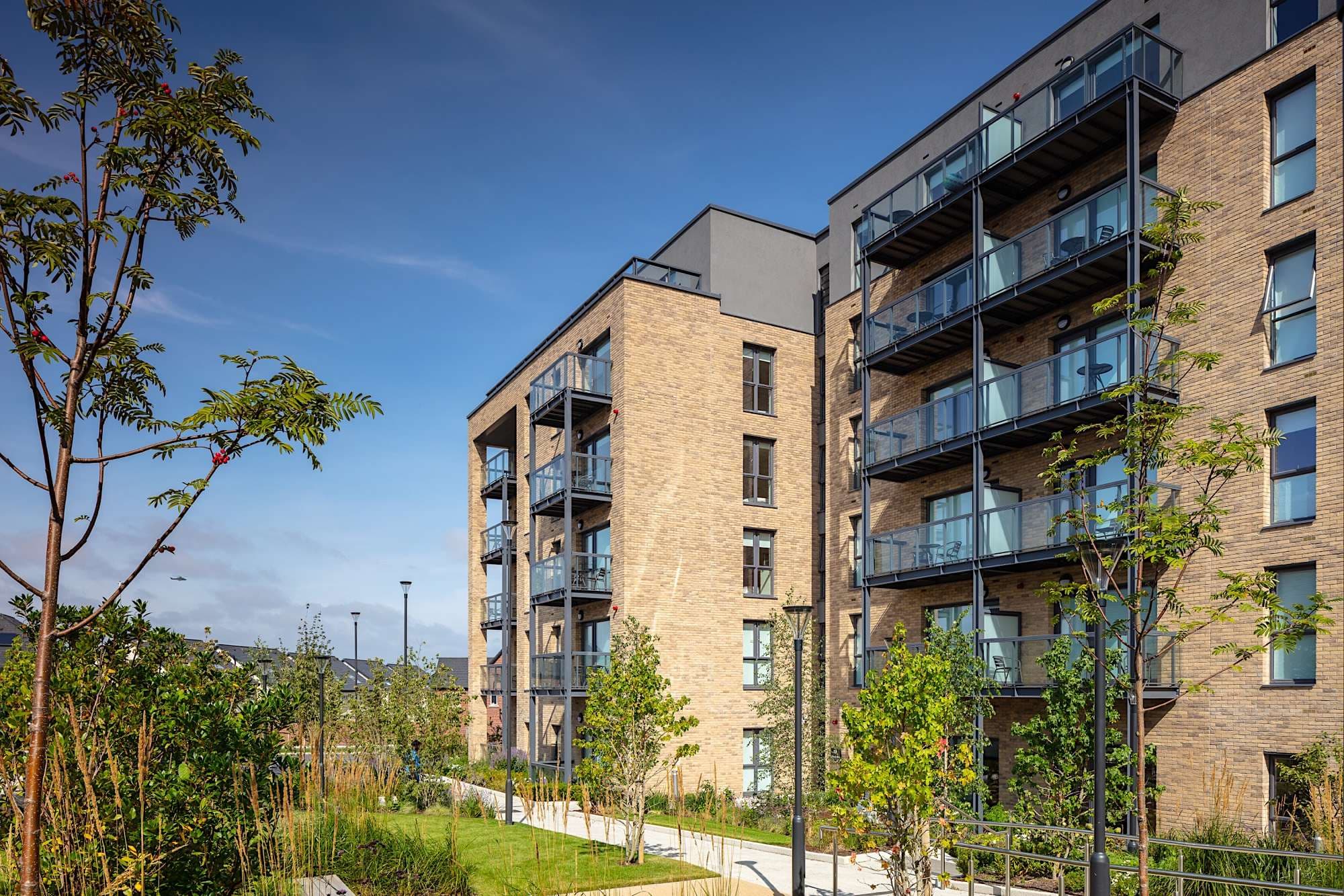 Designed to provide a significant amount of strategically located and well-connected public and communal open spaces throughout the development, resulting in the provision of a ‘green link’ through the centre of the site. Passive surveillance through the careful arrangement of the buildings is achieved, offering the opportunity for a high level of interaction between residents.