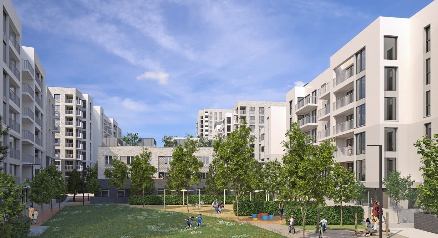Conceived as a new quarter, incorporating a series of character areas that provide new urban spaces, residential courtyards, parkland and a town square addressed by a 15-storey landmark residential tower.
