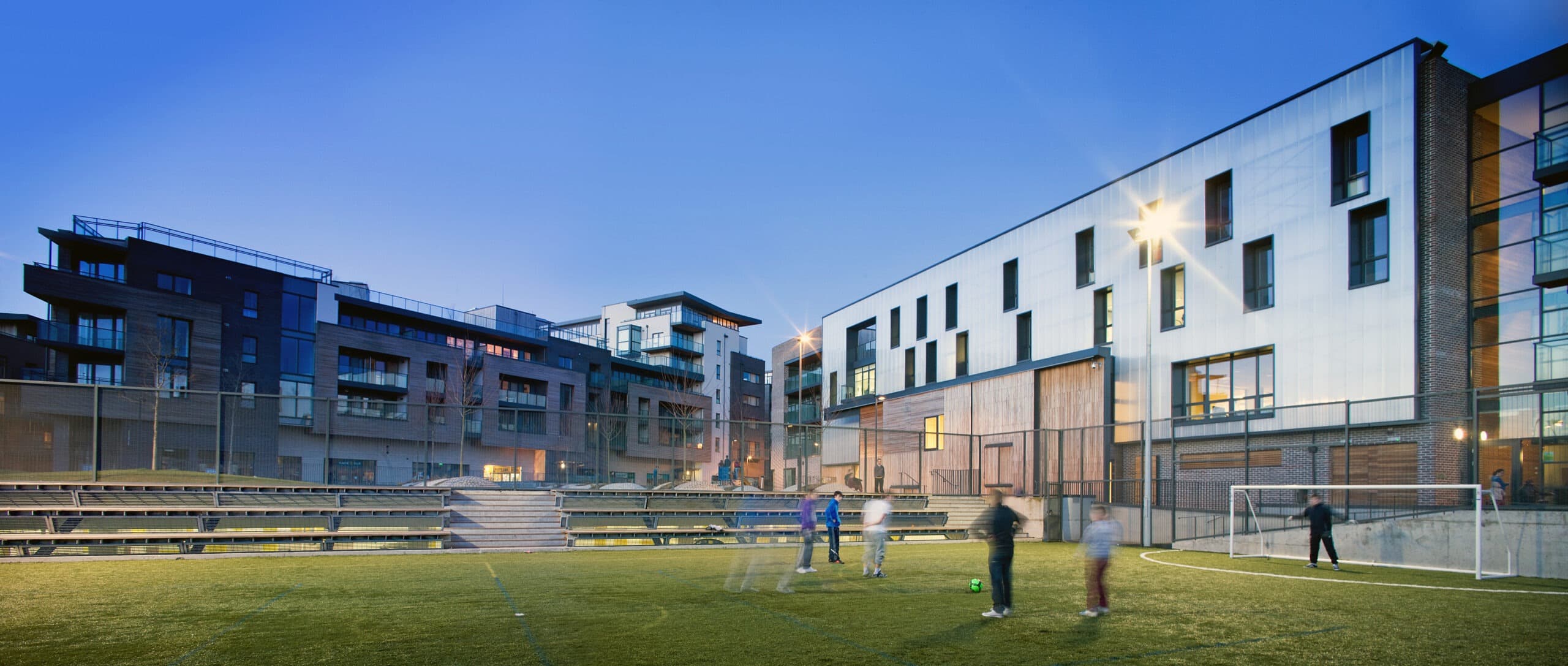 The complex brief asked for a wide range of residential tenures to be accommodated. Social, affordable, private rented and owner-occupied units were provided in a carefully managed scheme fostering a cohesive social mix throughout the large development site.