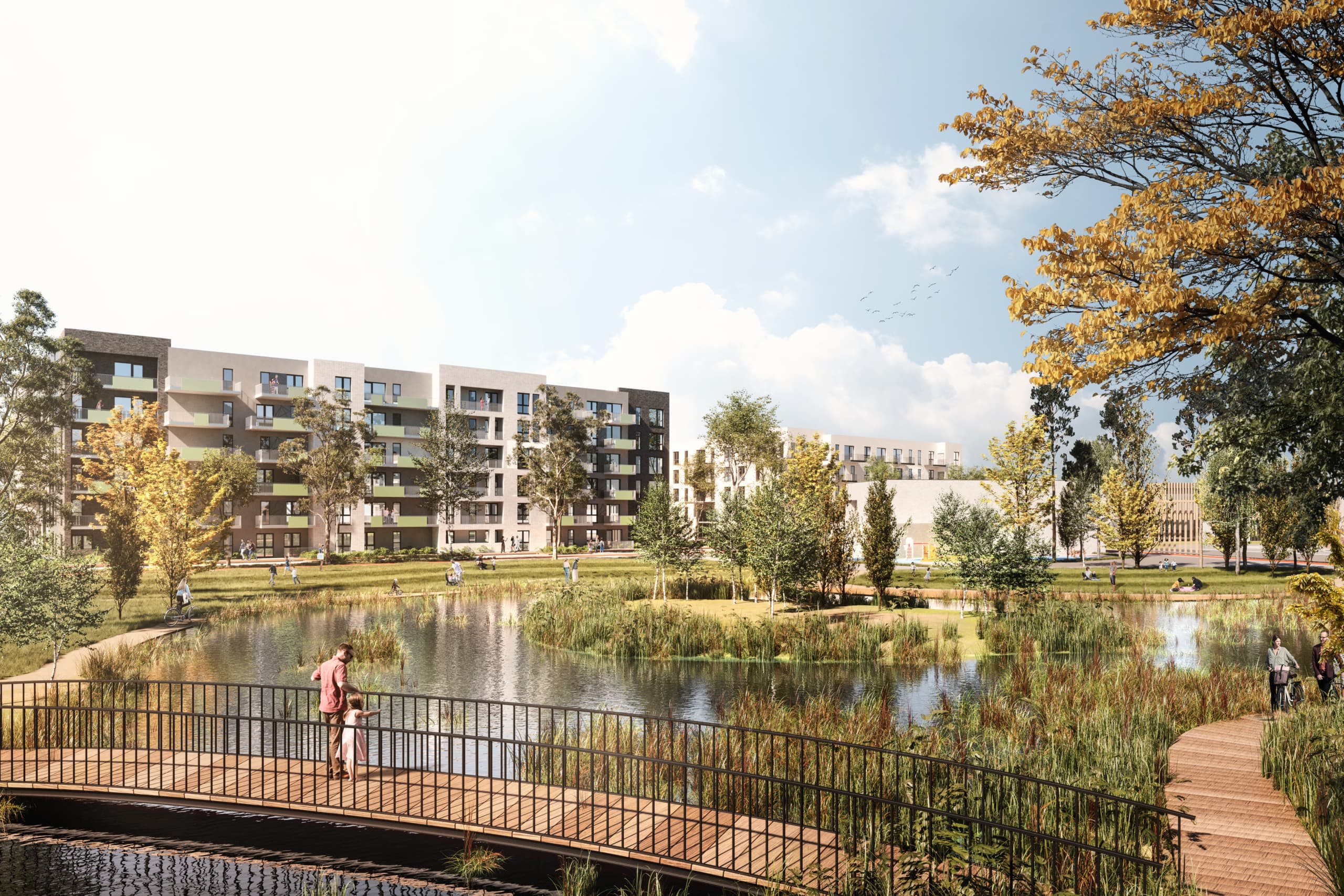 Urban regeneration of a former local authority housing scheme has created a new urban quarter, reintegrating the area into the fabric of the city.