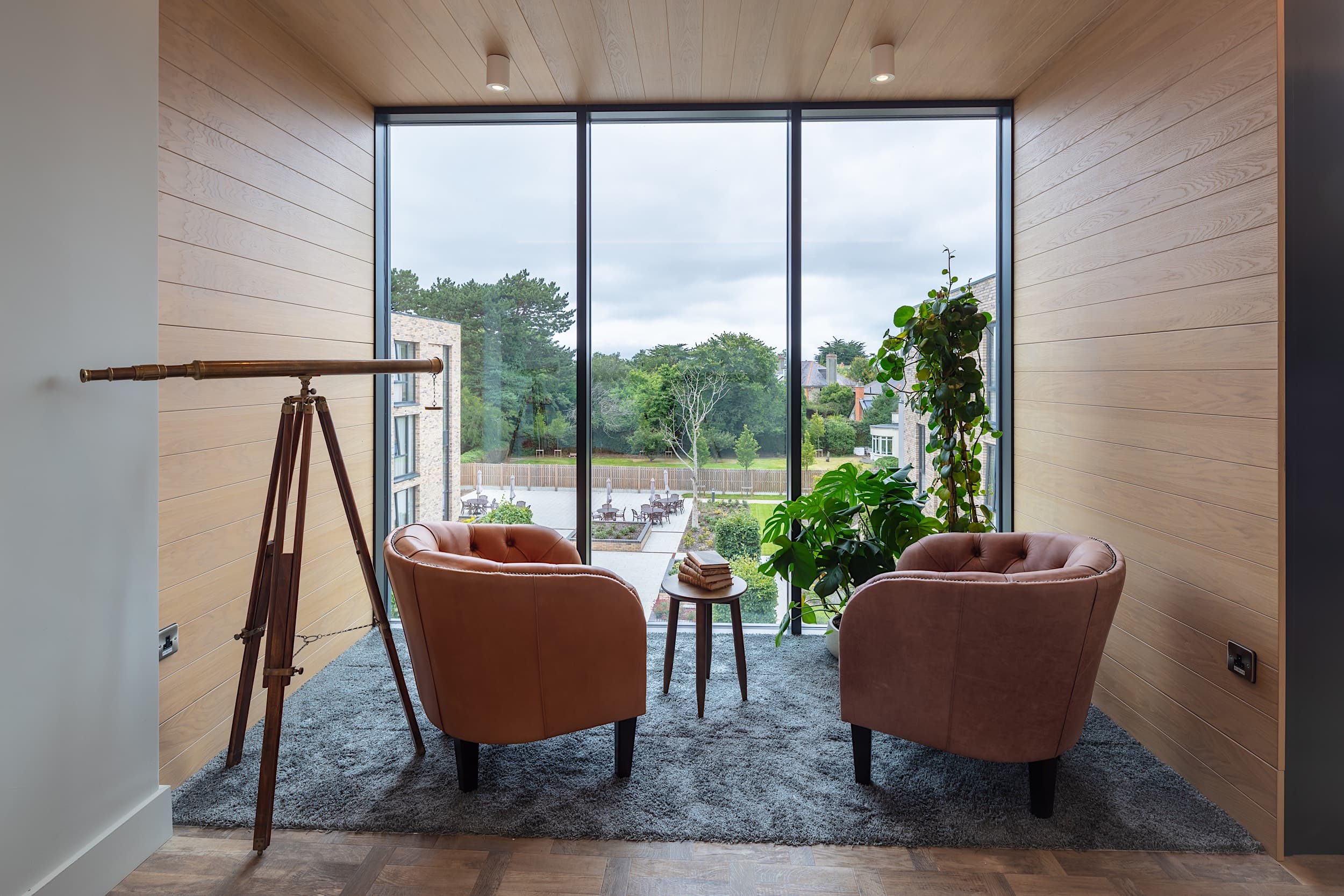 Particular attention was given to fabric and wallpaper choices. Bespoke day-room chairs were upholstered in antimicrobial, hygienic fabrics that were tactile and non-clinical, ensuring they were easy to grip for less mobile occupants.