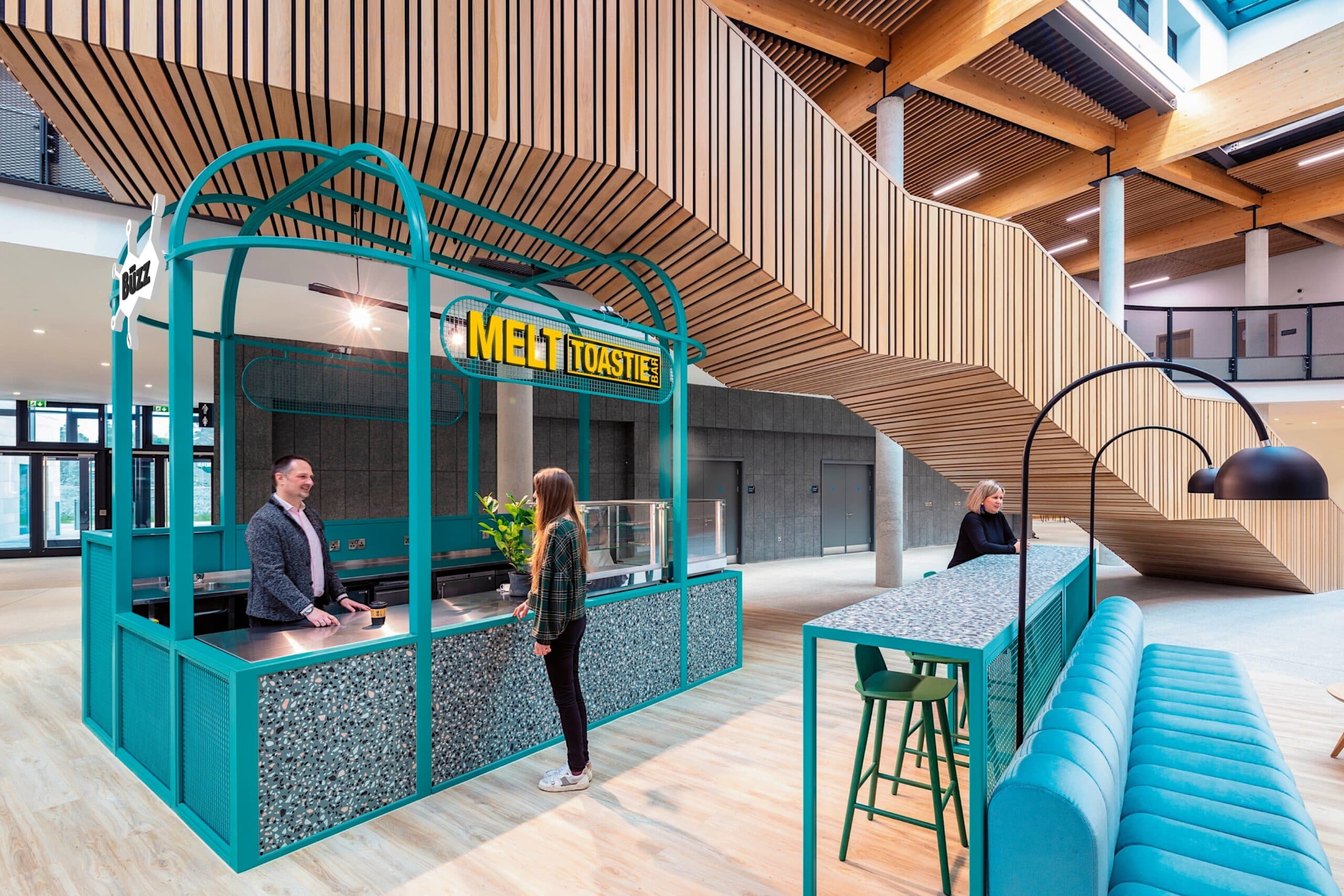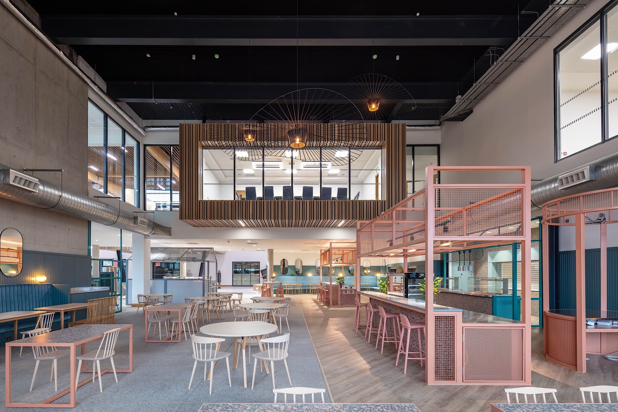 A variety of multifunctional and open spaces that support student life at UCD. This included the provision of a market-style food hall and retail units, including a convenience store.